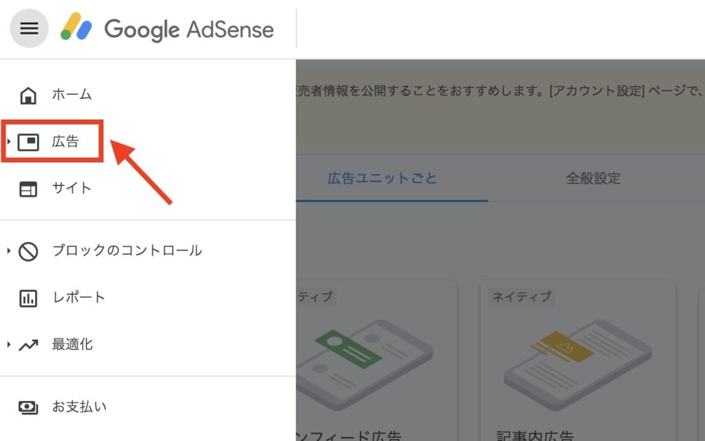続いて「広告ユニットごと」をクリックします。