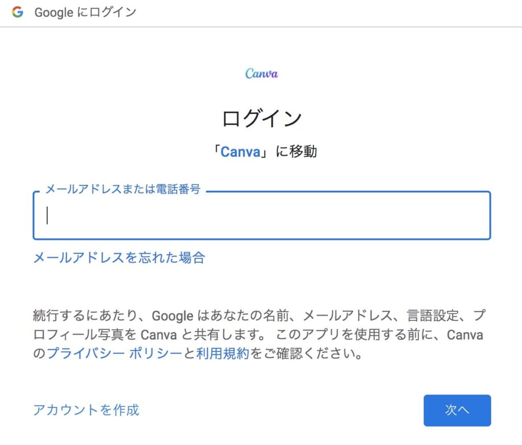 Canvaで新規会員登録する場合、