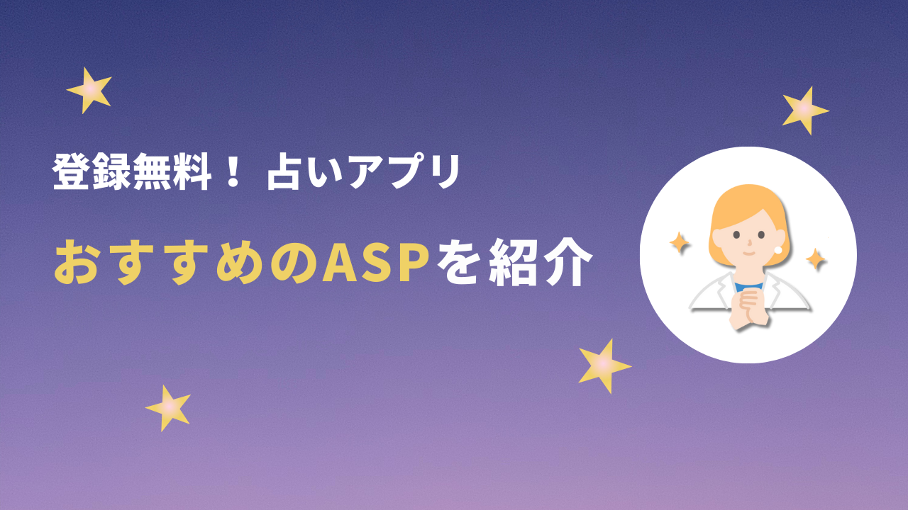 「結婚」「復縁」「人間関係」の占いアプリを取り扱っているASP(アフィリエイト)に登録したいのですが、おすすめのASPをいくつか知りたいです!また占いアプリの登録から報酬を獲得するまでの流れも一緒に教えてほしいです。