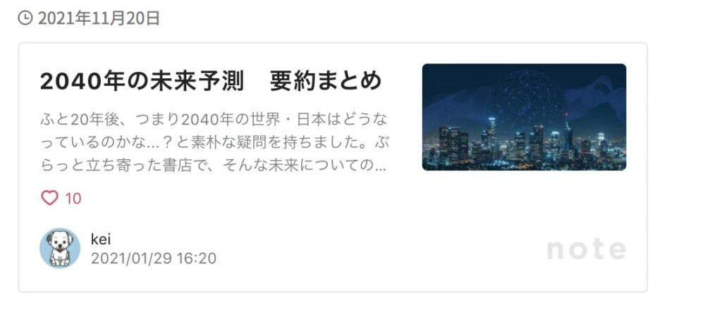 WordPressブログ内にnoteを埋め込むことができまして、実際に埋め込むと以下のように表示できます。