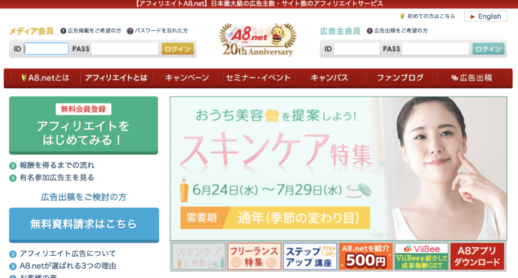 A8.netの登録方法はA8.netの登録方法8ステップで紹介しています。登録がお済みでない方は参考にしてみてください。